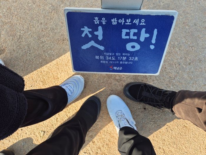 식사 후 잠시 거리를 거닐다 녹우당으로 이동하였는데 해설사님의 열정적 설명 덕분에 자유시간이 촉박하여 500년된 은행나무와 비자나무만 보고 내려와야 했다. 50분간 버스를 타고 땅끝마을로 이동하여 모노레일을 타고 전망대를 올라가 한반도의 땅끝을 바라보고 내려와 군고구마를 먹으며 바닷가 해안길의 데크를 따라 산책하고 왔다. 한겨울 오후 바다의 윤슬은 참으로 아름다웠다.