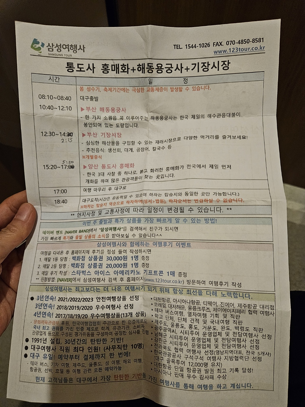 일정에 대한 고민은 여행사가 어련히 알아서 했을 것이므로, 시간 맞춰 약속 장소에 나가는 것만 신경을 쓰면 되니 편했다.