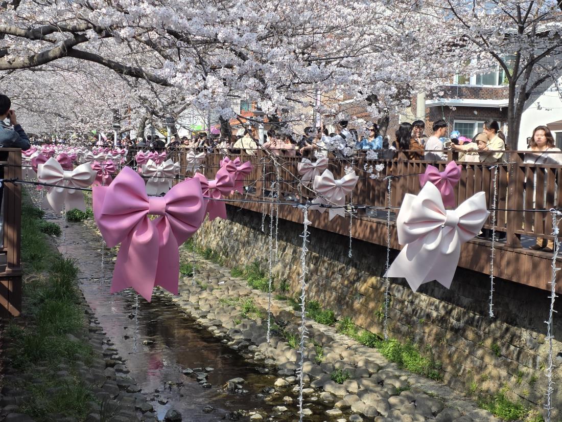 어제 오늘 따뜻한 기온과 햇빛으로 예상했던 것 보다 활짝 핀 벚꽃으로 인해 진해 곳곳에는 관광객들로 붐볐습니다.