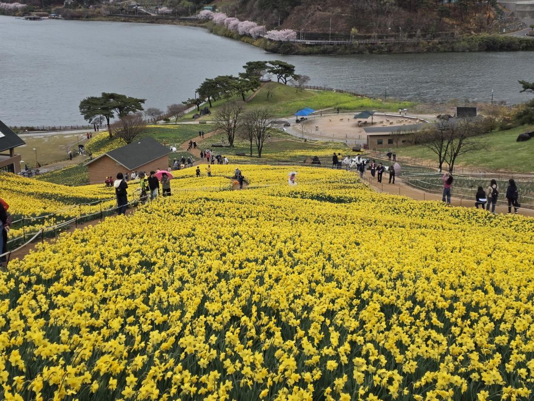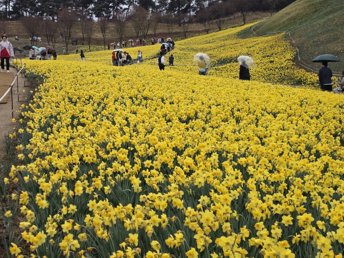 비를 살짝 머금은 샛노란 수선화가 온 들판을 물들여 놓았고, 만개를 지나 바람에 날리는 꽃비를 선사해준 벚꽃나무들 사이를 걸어보는 작은 행복도 만끽하는 하루였습니다.