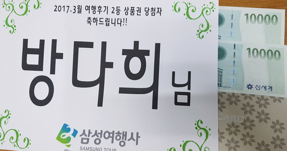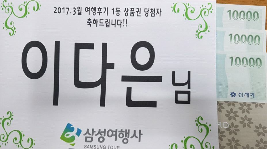 영화표는 여행후기 등록 당시 핸드폰으로 보내드립니다.