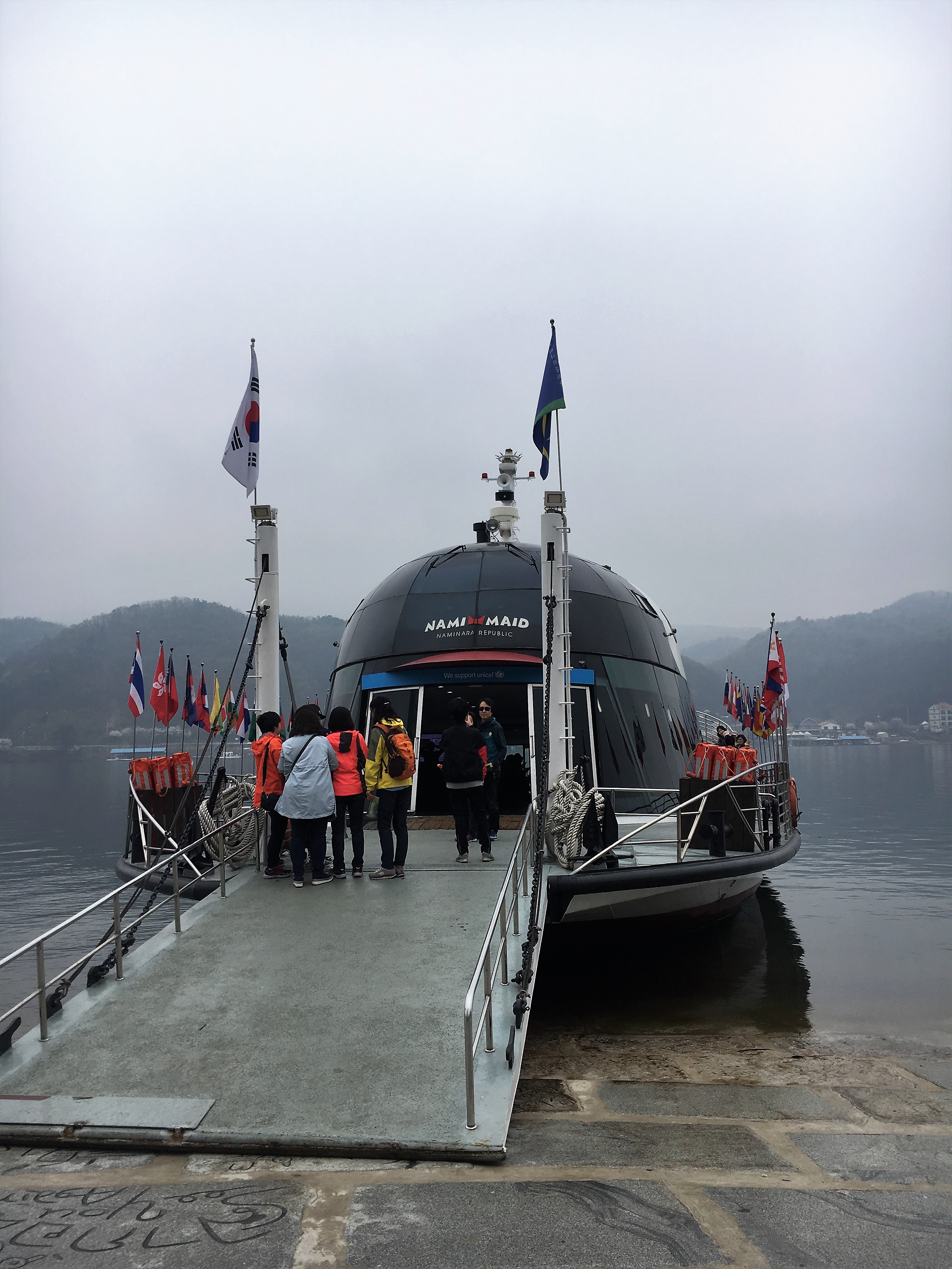 남이섬을 들어가는 방법은 짚라인을 타고 슝~ 들어가는 방법과 유람선을 타고 가는 방법이 있습니다. 저희는 유람선을 타고 둥둥~