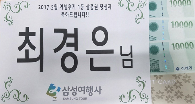 5월 여행 후기 당첨자입니다!