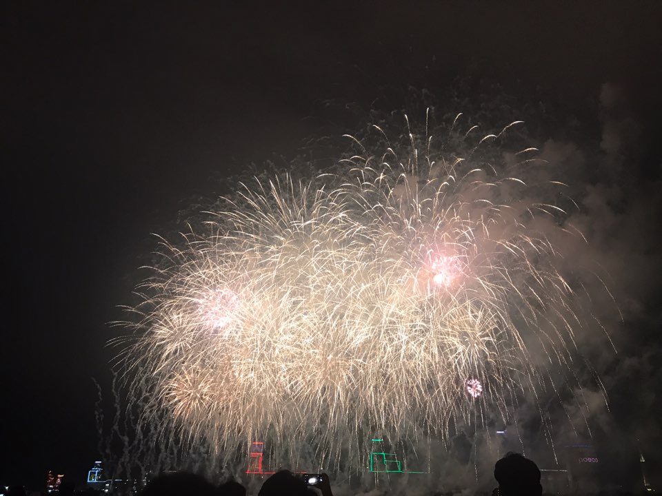 비가 와서 우의를 입고 조금은 젖으면서 불꽃축제를 기다려서 힘들기도 했지만, 좋은 추억이었습니다.