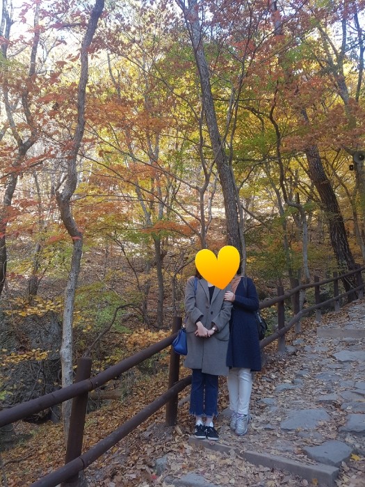 오색빛 눈부시게 물든 단풍절경 아래서 딸과 함께 예쁜 사진도 찍으며 좋은 추억을 만들었습니다.