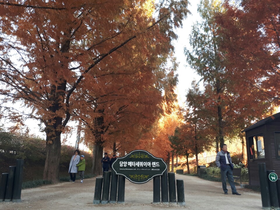 단풍마냥 물든 메타세콰이어가로수길에서는 여름날 푸르른빛깔과는 다른 가을날에 운치를 느끼며 인생사진을 건져보실수 있답니다^^
