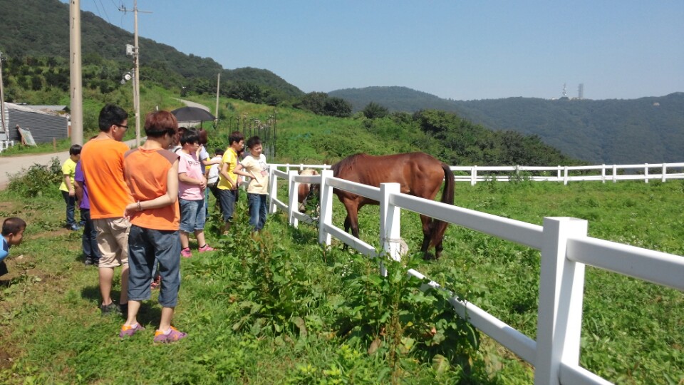먼저 말 가까이에 갈 때 주의 사항과 풀숲에 서 뛰어 놀 때 주의 사항 간단히 말하고 나니, 어느새 도착