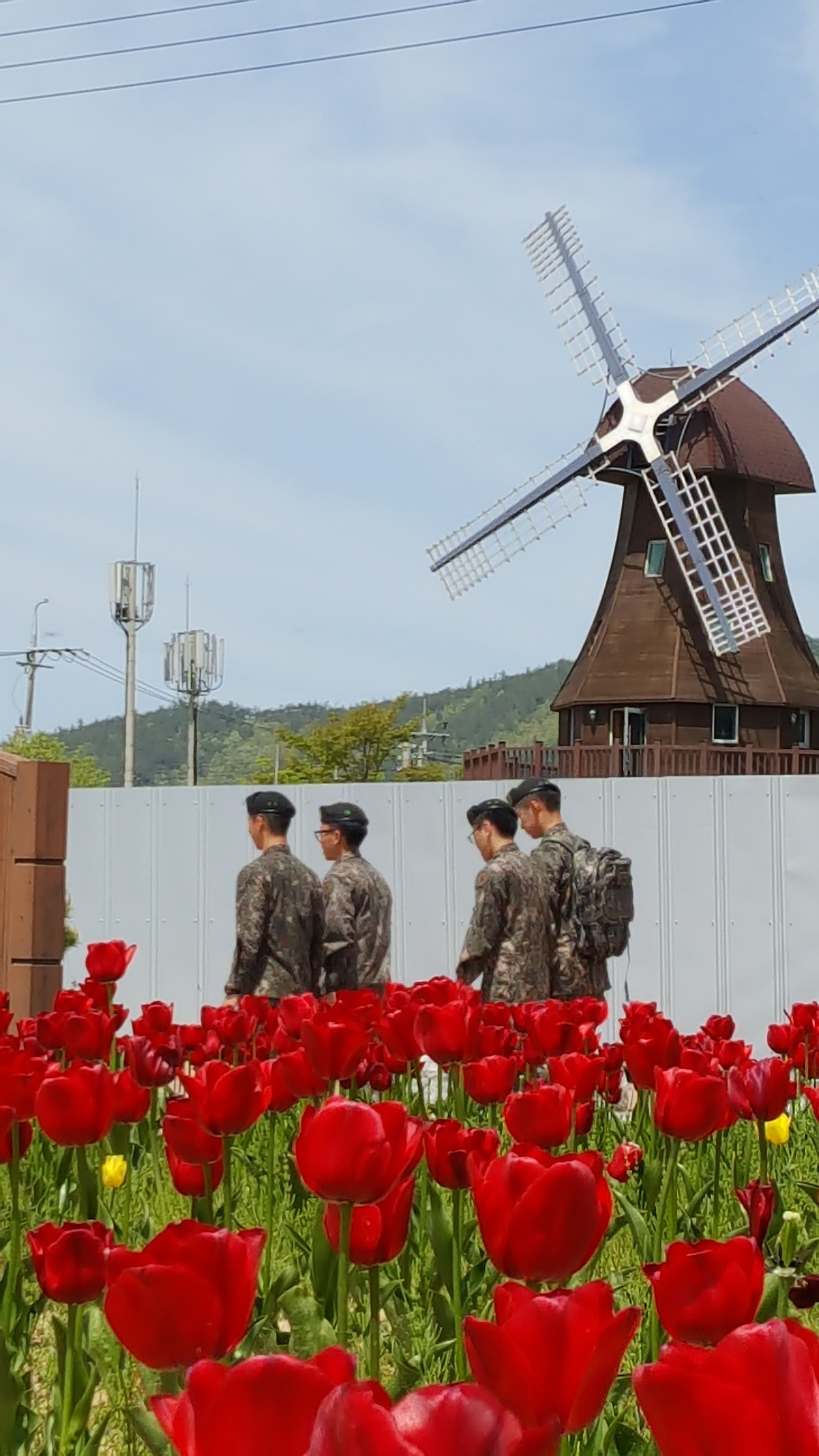 [▲ 하멜기념관 풍차광장앞을 지나가는 씩씩한 군인들]