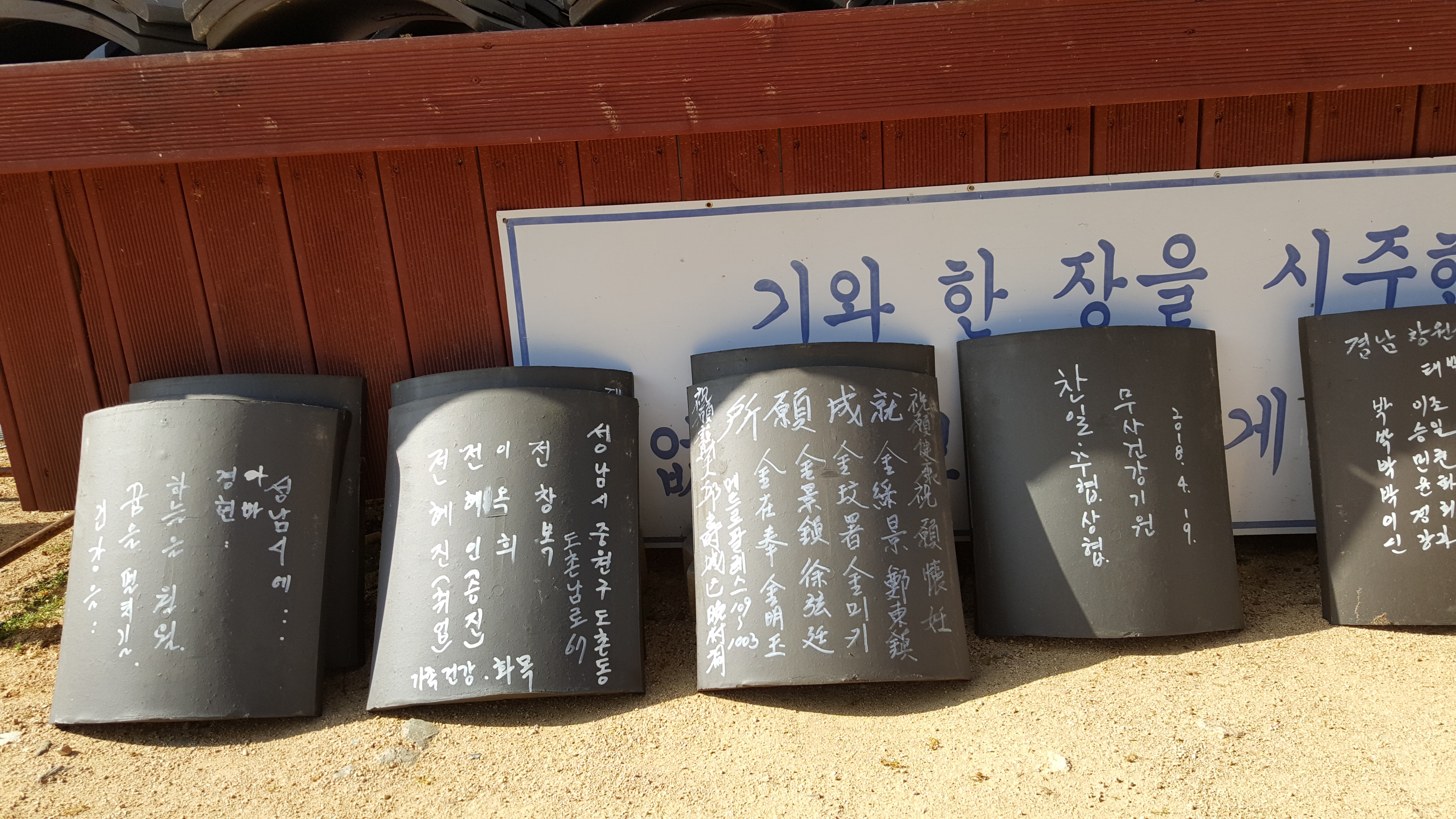 이곳 사찰에서는 마침 기와불사 행사를 진행하고 있어서 우리가족 모두의 건강을 기원하는 축원문을 기왓장에 정성들여 기록했다.