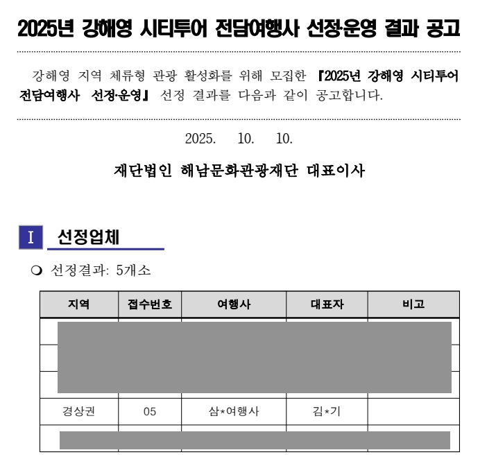 ' 2025 강해영 시티투어 전담여행사'로 선정되었습니다.